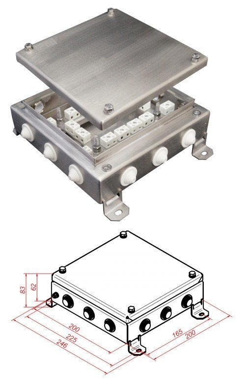 Количество кабельных вводов 12 | Габаритные размеры мм 200х200х60 |