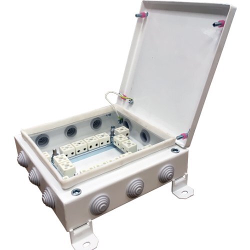 Корпус коробки имеет двойную защиту от коррозии (гальваническое покрытие и покраска). Крышка прижимается к корпусу через силиконовую прокладку. Винт крепления крышки снабжен уплотняющей тарельчатой шайбой с фторопластовым покрытием. Внутри корпуса коробки установлены керамические клеммные колодки, обеспечивающие соединение "под винт", и клемма заземления «РЕ». В боковых стенках устанавливаются втулки уплотнительные IP54 мембранного типа. Крепление коробки к элементам конструкций рекомендуется осуществлять с применением винтов или саморезов на металлические дюбели.