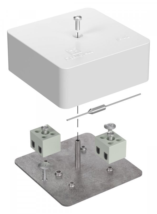 - конструкция из двух стальных пластин позволяет надежно крепить коробку к поверхности стен и потолков;