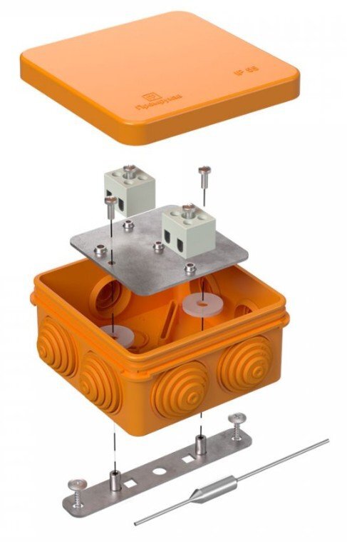 - конструкция из двух стальных пластин позволяет надежно крепить коробку к поверхности стен и потолков;