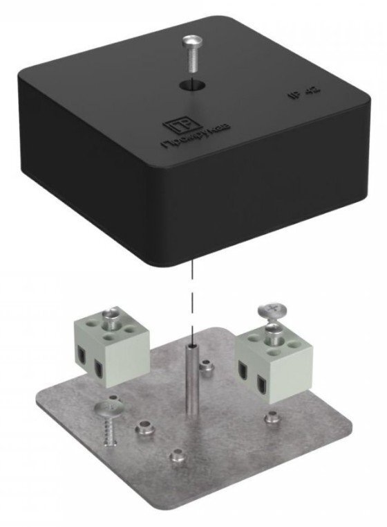 Коробка огнестойкая для кабель-канала; Е15-Е120; керам.клеммник на 4 полюса, сечение кабеля до 1.5 мм?, безгалогенная (HF); УХЛ4, IP42, t-раб.-25…+40°C, габ.размеры 75х75х30 мм. Цвет черный (RAL9005).