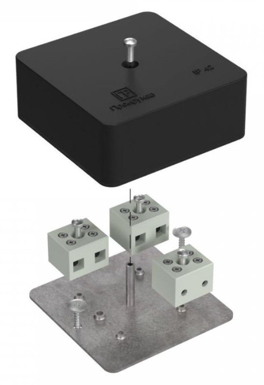 Коробка огнестойкая для кабель-канала; Е15-Е120; керам.клеммник на 6 полюсов, сечение кабеля до 6.0 мм?, безгалогенная (HF); УХЛ4, IP42, t-раб.-25…+40°C, габ.размеры 75х75х30 мм. Цвет черный (RAL9005).