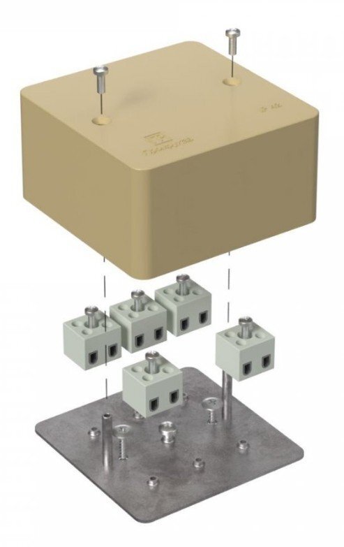 Коробки огнестойкие применяются при прокладке систем противопожарной безопасности по стенам, потолкам зданий и сооружений. Огнестойкие коробки применяются для механической защиты мест соединения проводов и кабелей, а так же для защиты от проникновения пыли, влаги и посторонних предметов. Коробки изготовлены из тепло- и огнестойких изоляционных материалов в соответствии ГОСТ 32126.1, подтвержденным испытанием методом раскалённой проволоки при температуре 650°С. Огнестойкость достигается наличием металлической пластины, керамических клемм и метизов, которые долго сохраняют свой функционал при возникновении пожара.