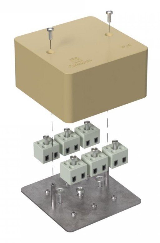Коробки огнестойкие применяются при прокладке систем противопожарной безопасности по стенам, потолкам зданий и сооружений. Огнестойкие коробки применяются для механической защиты мест соединения проводов и кабелей, а так же для защиты от проникновения пыли, влаги и посторонних предметов. Коробки изготовлены из тепло- и огнестойких изоляционных материалов в соответствии ГОСТ 32126.1, подтвержденным испытанием методом раскалённой проволоки при температуре 650°С. Огнестойкость достигается наличием металлической пластины, керамических клемм и метизов, которые долго сохраняют свой функционал при возникновении пожара.