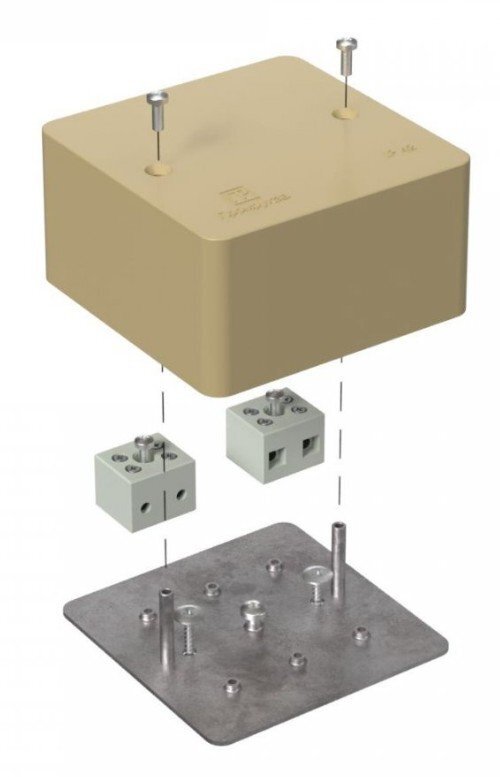 Коробка огнестойкая для кабель-канала; Е15-Е120; керам.клеммник на 4 полюса, сечение кабеля до 6.0 мм?, безгалогенная (HF); УХЛ4, IP42, t-раб.-25…+40°C, габ.размеры 85х85х45 мм. Цвет бежевый (RAL1001).