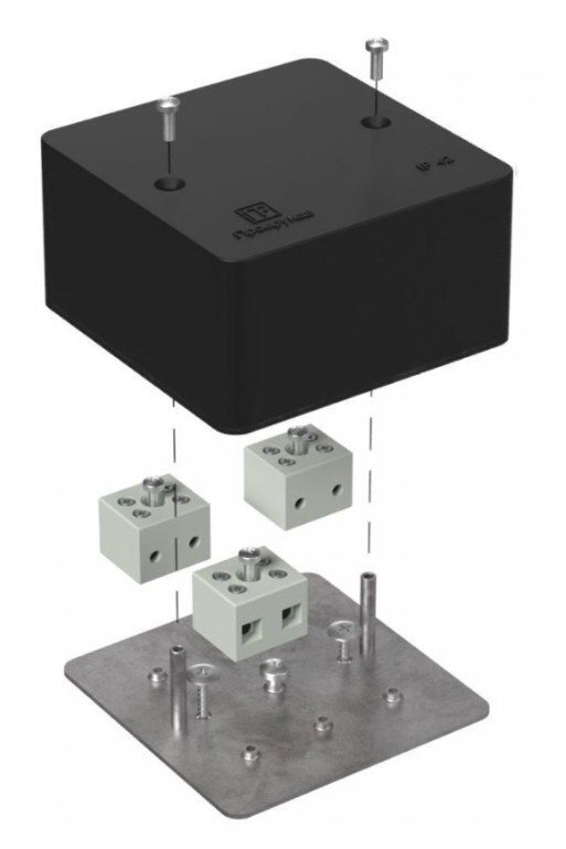 Коробка огнестойкая для кабель-канала; Е15-Е120; керам.клеммник на 6 полюсов, сечение кабеля до 6.0 мм?, безгалогенная (HF); УХЛ4, IP42, t-раб.-25…+40°C, габ.размеры 85х85х45 мм. Цвет черный (RAL 9005).