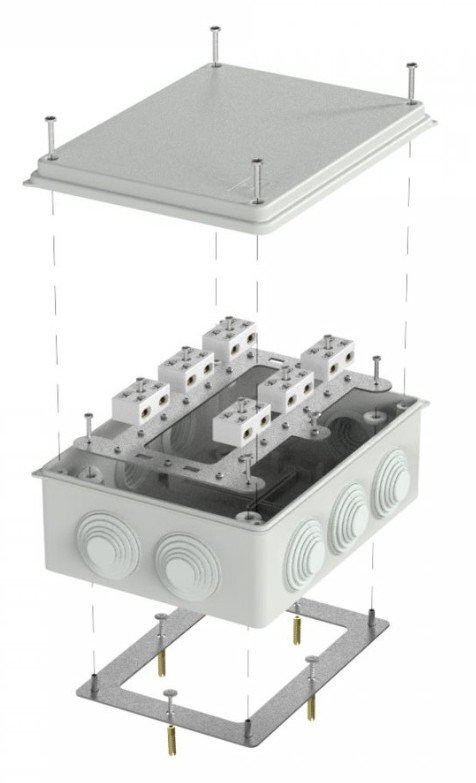 Коробки огнестойкие применяются при прокладке систем противопожарной безопасности по стенам, потолкам зданий и сооружений. Огнестойкие коробки применяются для механической защиты мест соединения проводов и кабелей, а так же для защиты от проникновения пыли, влаги и посторонних предметов. Коробки изготовлены из тепло- и огнестойких изоляционных материалов в соответствии ГОСТ 32126.1, подтвержденным испытанием методом раскалённой проволоки при температуре 650°С. Огнестойкость достигается наличием металлической пластины, керамических клемм и метизов, которые долго сохраняют свой функционал при возникновении пожара.