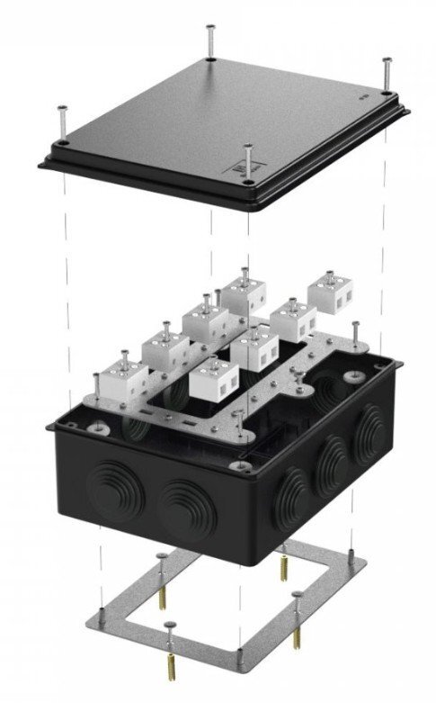 Коробки огнестойкие применяются при прокладке систем противопожарной безопасности по стенам, потолкам зданий и сооружений. Огнестойкие коробки применяются для механической защиты мест соединения проводов и кабелей, а так же для защиты от проникновения пыли, влаги и посторонних предметов. Коробки изготовлены из тепло- и огнестойких изоляционных материалов в соответствии ГОСТ 32126.1, подтвержденным испытанием методом раскалённой проволоки при температуре 650°С. Огнестойкость достигается наличием металлической пластины, керамических клемм и метизов, которые долго сохраняют свой функционал при возникновении пожара.