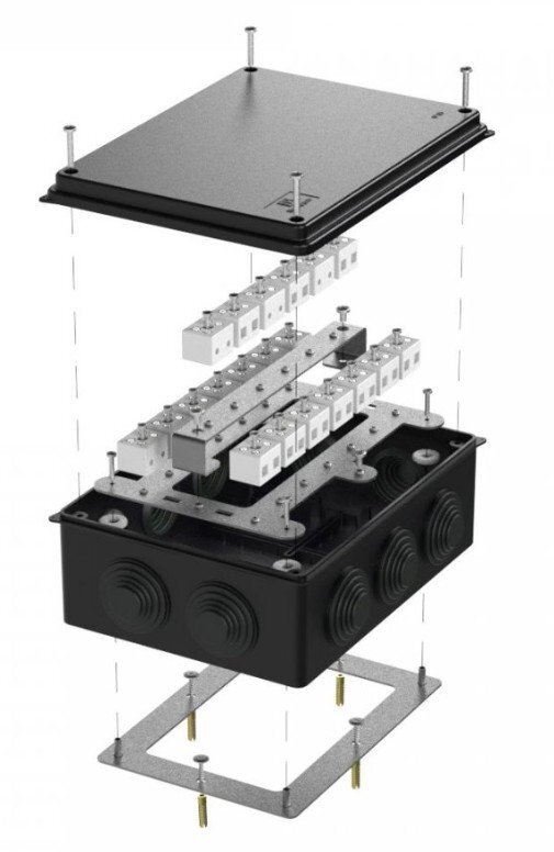 Коробки огнестойкие применяются при прокладке систем противопожарной безопасности по стенам, потолкам зданий и сооружений. Огнестойкие коробки применяются для механической защиты мест соединения проводов и кабелей, а так же для защиты от проникновения пыли, влаги и посторонних предметов. Коробки изготовлены из тепло- и огнестойких изоляционных материалов в соответствии ГОСТ 32126.1, подтвержденным испытанием методом раскалённой проволоки при температуре 650°С. Огнестойкость достигается наличием металлической пластины, керамических клемм и метизов, которые долго сохраняют свой функционал при возникновении пожара.