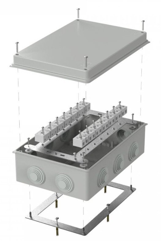 Коробки огнестойкие применяются при прокладке систем противопожарной безопасности по стенам, потолкам зданий и сооружений. Огнестойкие коробки применяются для механической защиты мест соединения проводов и кабелей, а так же для защиты от проникновения пыли, влаги и посторонних предметов. Коробки изготовлены из тепло- и огнестойких изоляционных материалов в соответствии ГОСТ 32126.1, подтвержденным испытанием методом раскалённой проволоки при температуре 650°С. Огнестойкость достигается наличием металлической пластины, керамических клемм и метизов, которые долго сохраняют свой функционал при возникновении пожара.