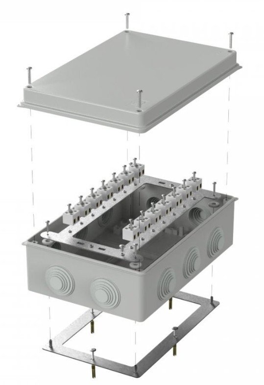 Коробки огнестойкие применяются при прокладке систем противопожарной безопасности по стенам, потолкам зданий и сооружений. Огнестойкие коробки применяются для механической защиты мест соединения проводов и кабелей, а так же для защиты от проникновения пыли, влаги и посторонних предметов. Коробки изготовлены из тепло- и огнестойких изоляционных материалов в соответствии ГОСТ 32126.1, подтвержденным испытанием методом раскалённой проволоки при температуре 650°С. Огнестойкость достигается наличием металлической пластины, керамических клемм и метизов, которые долго сохраняют свой функционал при возникновении пожара.