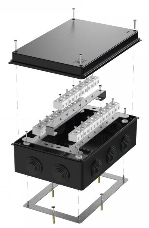 Коробки огнестойкие применяются при прокладке систем противопожарной безопасности по стенам, потолкам зданий и сооружений. Огнестойкие коробки применяются для механической защиты мест соединения проводов и кабелей, а так же для защиты от проникновения пыли, влаги и посторонних предметов. Коробки изготовлены из тепло- и огнестойких изоляционных материалов в соответствии ГОСТ 32126.1, подтвержденным испытанием методом раскалённой проволоки при температуре 650°С. Огнестойкость достигается наличием металлической пластины, керамических клемм и метизов, которые долго сохраняют свой функционал при возникновении пожара.