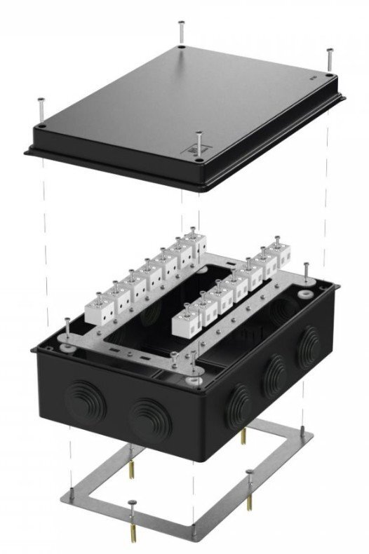 Коробки огнестойкие применяются при прокладке систем противопожарной безопасности по стенам, потолкам зданий и сооружений. Огнестойкие коробки применяются для механической защиты мест соединения проводов и кабелей, а так же для защиты от проникновения пыли, влаги и посторонних предметов. Коробки изготовлены из тепло- и огнестойких изоляционных материалов в соответствии ГОСТ 32126.1, подтвержденным испытанием методом раскалённой проволоки при температуре 650°С. Огнестойкость достигается наличием металлической пластины, керамических клемм и метизов, которые долго сохраняют свой функционал при возникновении пожара.
