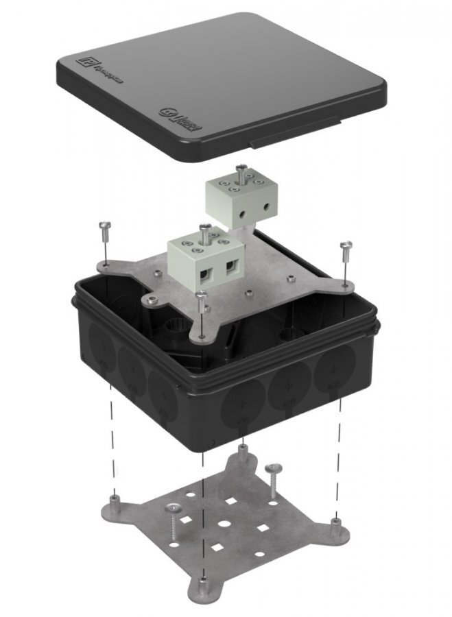 Коробки двухкомпонентные огнестойкие сочетают в себе надежность и высокую скорость монтажа. Они применяются при прокладке систем противопожарной безопасности по различным поверхностям зданий и сооружений, необходимы для механической защиты мест соединения проводов и кабелей, а так же для защиты от проникновения пыли, влаги и посторонних предметов. Лаконичный дизайн способствует эстетичному монтажу проводки, а мембраны позволяют увеличить скорость монтажа. Материал изготовления коробок является безгалогенным, что позволяет использовать изделие в общественных местах с высоким скоплением людей. Коробка имеет монолитное исполнение с уплотнителем и мембранами за счёт чего достигается высокая степень защиты IP66.