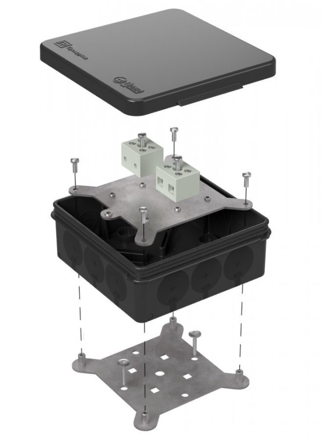 Коробки двухкомпонентные огнестойкие сочетают в себе надежность и высокую скорость монтажа. Они применяются при прокладке систем противопожарной безопасности по различным поверхностям зданий и сооружений, необходимы для механической защиты мест соединения проводов и кабелей, а так же для защиты от проникновения пыли, влаги и посторонних предметов. Лаконичный дизайн способствует эстетичному монтажу проводки, а мембраны позволяют увеличить скорость монтажа. Материал изготовления коробок является безгалогенным, что позволяет использовать изделие в общественных местах с высоким скоплением людей. Коробка имеет монолитное исполнение с уплотнителем и мембранами за счёт чего достигается высокая степень защиты IP66.
