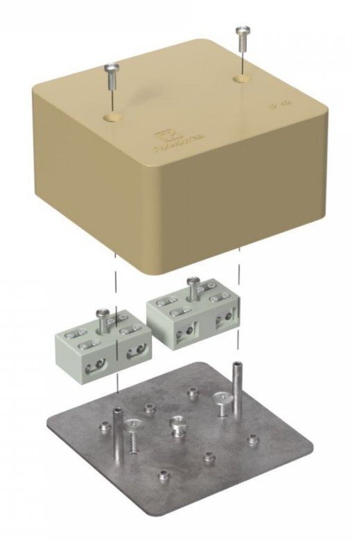 Коробка огнестойкая разветвительная для кабель-канала; Е15-Е60; керам.клеммник на 4 полюса, сечение кабеля до 6.0 мм?, парные клеммы для разветвления, безгалогенная (HF); УХЛ4, IP42, t-раб.-25…+40°C, габ.размеры 85х85х45 мм. Цвет бежевый (RAL1001).