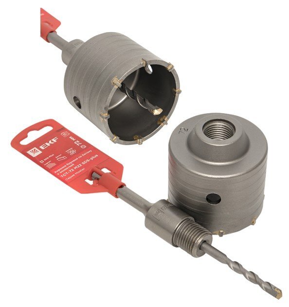 Коронка буровая по бетону с оснасткой EKF Коронка буровая по бетону с оснасткой TCT-72 М22 SDS-plus Master (tct-72-m22)