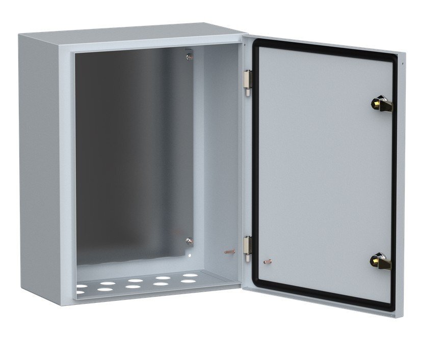 Сварной металлический корпус со съемной монтажной панелью. Дверца корпуса запирается на замок. Ключ замка имеет единый секрет.