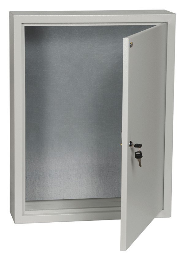Сварной металлический корпус со съемной монтажной панелью. Дверца корпуса запирается на замок. Ключ замка имеет единый секрет.