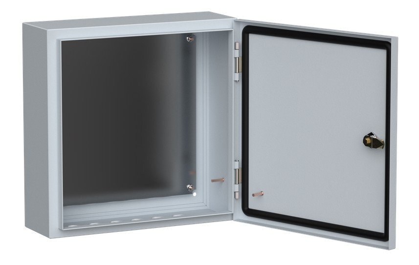Сварной металлический корпус со съемной монтажной панелью. Дверца корпуса запирается на замок. Ключ замка имеет единый секрет.