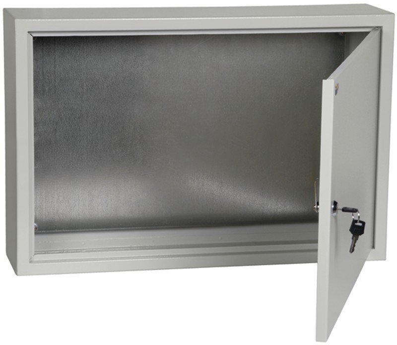 Сварной металлический корпус со съемной монтажной панелью. Дверца корпуса запирается на замок. Ключ замка имеет единый секрет.