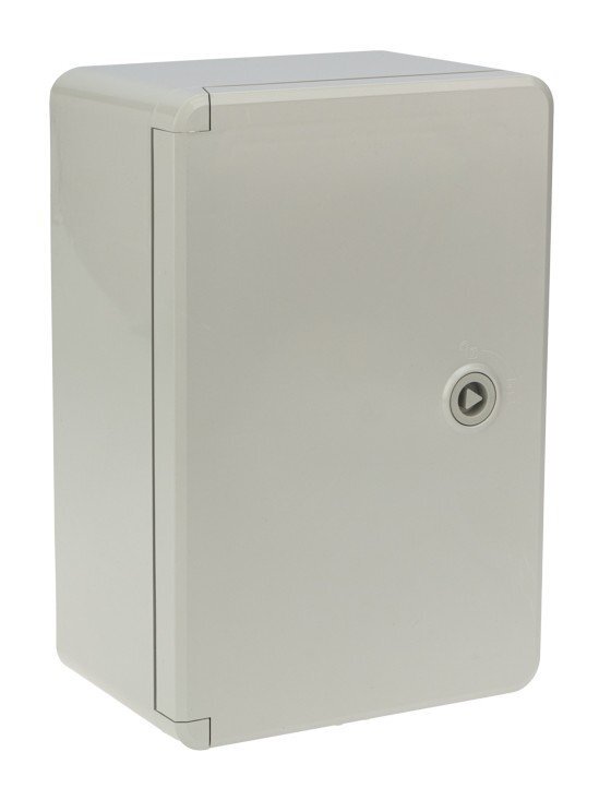 Бокс пластиковый уличный с оцинкованной монтажной панелью; IP65, IK10; УХЛ1; t-раб. -45…+80°C; габ.размеры 300х200х130 мм. В комплекте: замок с трехгранным ключом, кронштейн для крепления к стене, уплотнительная прокладка.