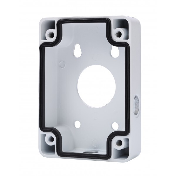 Монтажная водо- и пылезащищённая коробка (junction box) изготовлена из алюминиевого сплава, предназначена для установки камер видеонаблюдения на стены или потолки, обеспечивает аккуратную прокладку кабелей внутри корпуса, рассчитана на нагрузку до 7 кг, рабочий температурный диапазон от -40 °C до +60 °C, относительная влажность менее 90 %, цвет белый.