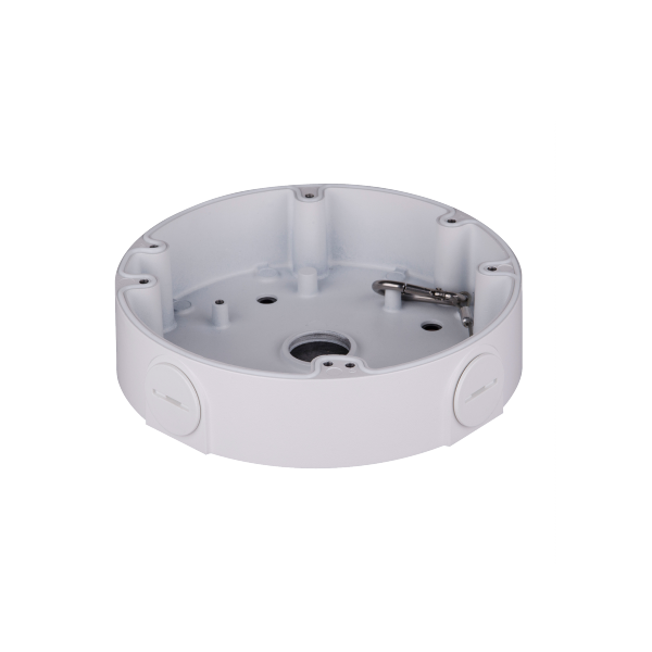 Dahua DH‑PFA138 представляет собой монтажную водо- и пылезащищённую коробку-соединитель (junction box) для установки камер видеонаблюдения, изготовленную из алюминиевого сплава, рассчитанную на нагрузку до 3 кг, выполненную в белом цвете, с резьбой G3/4″ для подключения камер или кронштейнов, рассчитанную на эксплуатацию при температуре от -40 °C до +60 °C и относительной влажности до <90 % RH; корпус снабжён крюком-петлёй для крепления страховочного троса, обеспечивает аккуратную скрытую прокладку кабелей и монтаж камеры на стену или потолок.