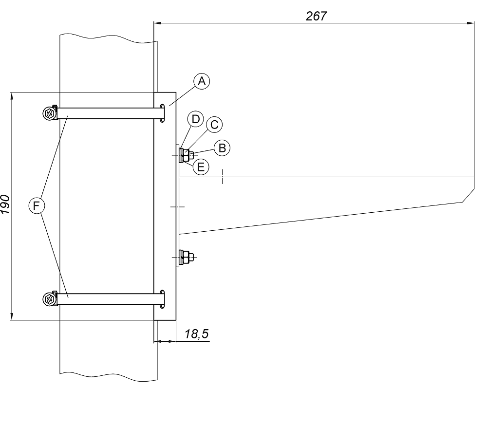 Кронштейн для крепления гермобоксов ТГБ-8Р Ех, ТГБ-8Г Ех, ТГБ-9Р, ТГБ-9 на квадратные и круглые опоры 115 ? 135 мм (другой размер – под заказ); Материал КС-4- нержавеющая кислотостойкая аустенитная сталь (12Х18Н10Т); Габаритные размеры (без хомутов и стяжек) 190х100х18.5мм