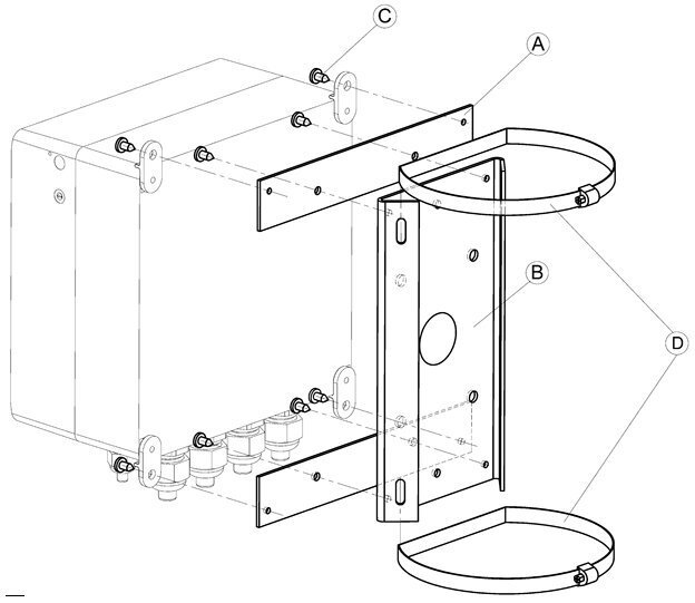 Кронштейн КС-1-02 предназначен для крепления коробки монтажной КМ-8 на квадратные и круглые опоры.