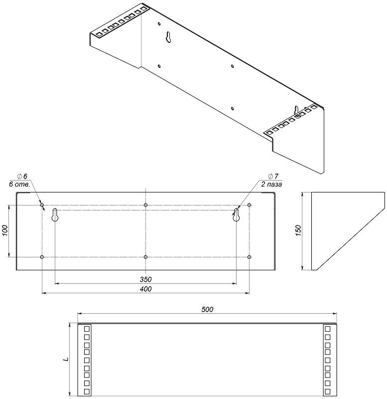 Кронштейн настенный вертикальный, выполненный в 19-дюймовом стандарте на 3 юнита