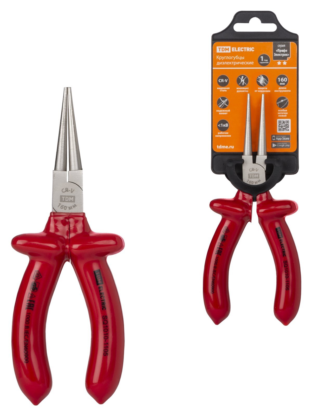 Круглогубцы TDM ЕLECTRIC Круглогубцы диэлектрические 160мм, 1000В, CR-V «ПрофиЭлектрик» TDM (SQ1010-1105)