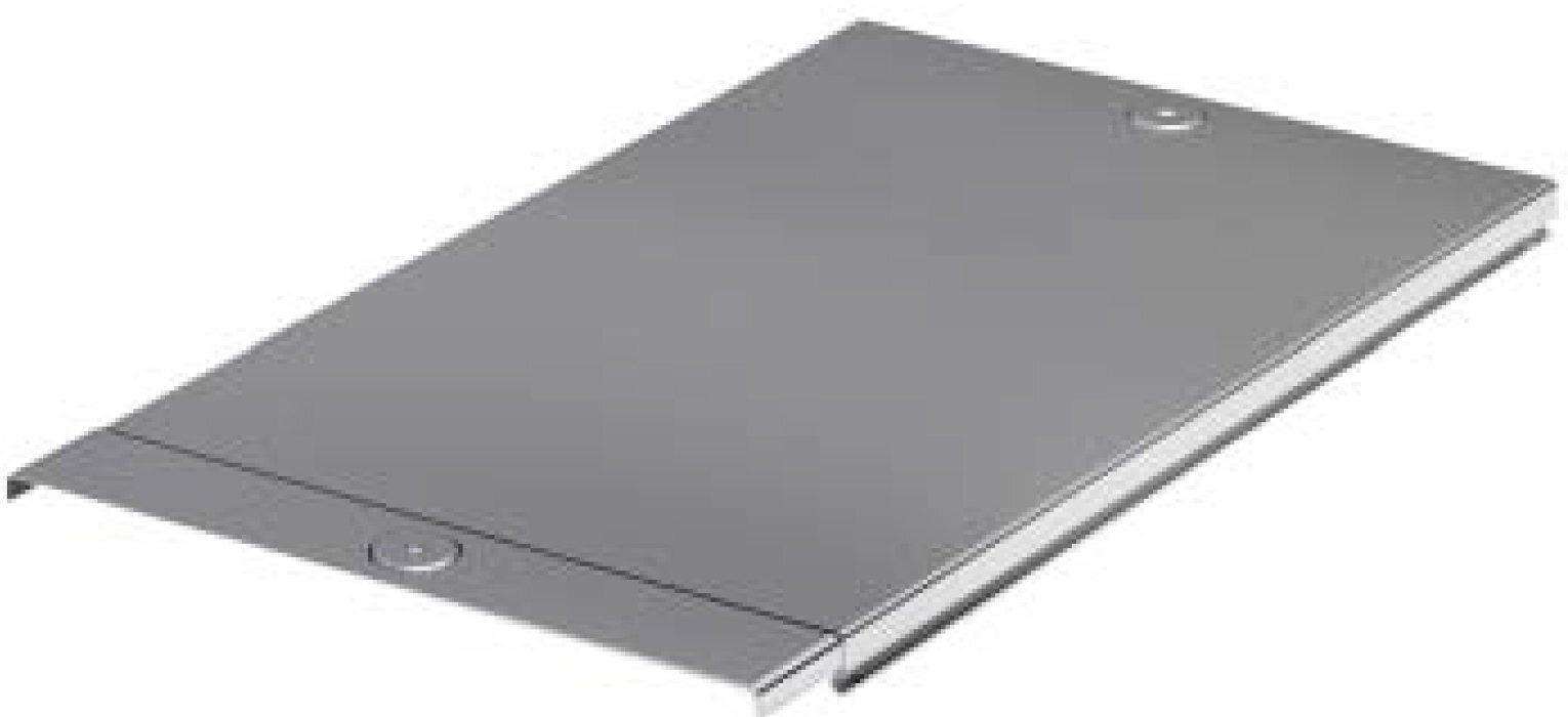 - защелкивается на лоток простым нажатием (С-образный профиль кромки). Крышка лотка имеет специально отштампованные концы для соединения внахлест. Используется винт М5х8 (код СМ030508) для создания контура заземления по крышке;