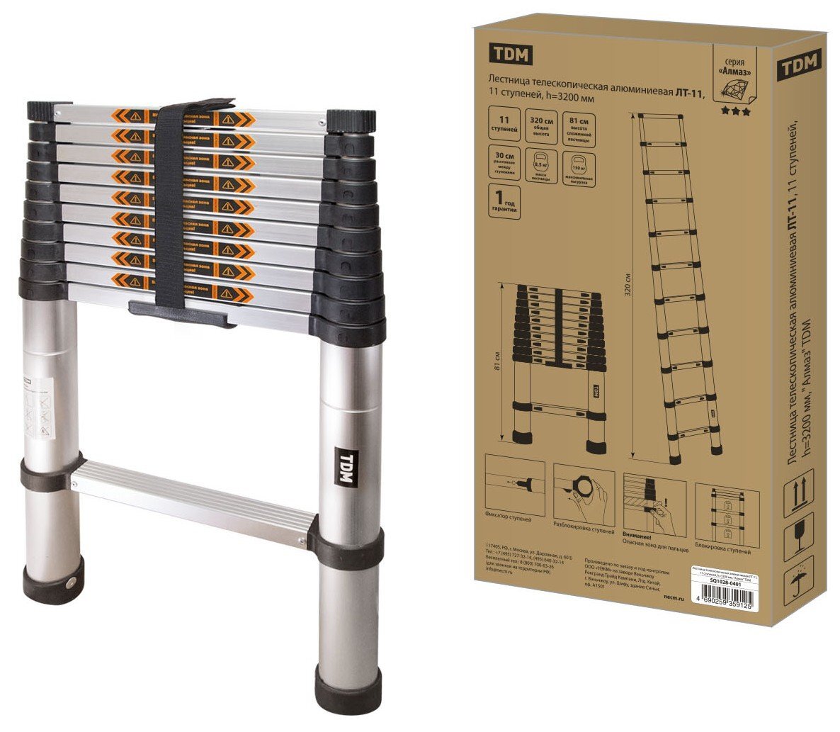 - высота разложенной лестницы/стремянки – 3200 мм.