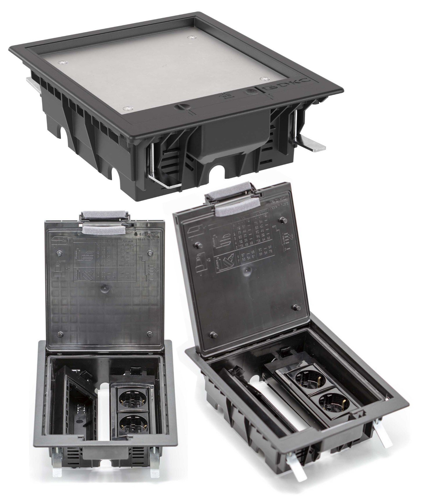 Назначение: организация рабочих мест в помещениях с открытым пространством. Установка производится в плиты фальшпола толщиной от 20 до 45 мм. Отверстие для монтажа 218?182 мм. Глубина монтажа от 73 до 108 мм. Крышка открывается под углом 110?, "утоплена" ниже уровня пола для монтажа напольного покрытия толщиной до 8 мм. Крышка усилена стальным листом, нагрузка - 450 кг. Ручка с запорным механизмом c двумя положениями: открыто/закрыто. В лючок возможна установка ЭУИ "Viva", "Avanti" от ДКС и изделий стандарта 45х45. Монтаж в два подрозеточных блока на 4 модуля каждый. Комплект поставки: лючок 8 модулей, основание и дно подрозеточного блока 4 модуля – 2 комплекта, винт M4x35 – 4 шт., крепежный элемент 4 шт. – 1 упаковка. Каркасы и рамки для ЭУИ заказываются дополнительно. Цвет - черный.