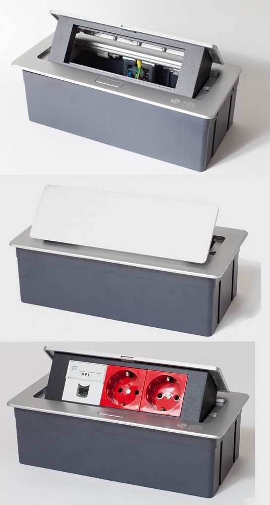 Люк SPL Люк настольный на 3 поста (45х45), металл, серебро, с пластиковой коробкой, IP40 (300010)