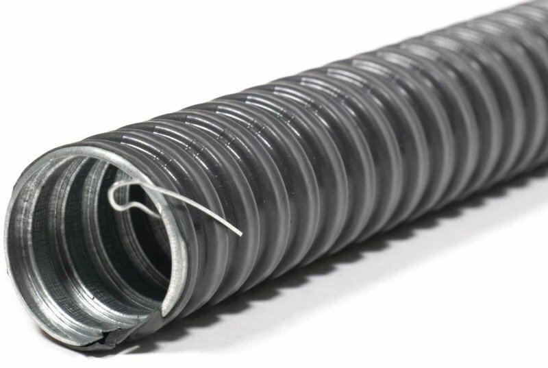 Металлорукав типа Р3-ЦП нг с протяжкой - негерметичный металлорукав в ПВХ изоляции, изготовленный из металлической оцинкованной ленты, предназначен для механической защиты электрических или информационных кабелей в трубных системах прокладки кабеля повышенной гибкости.