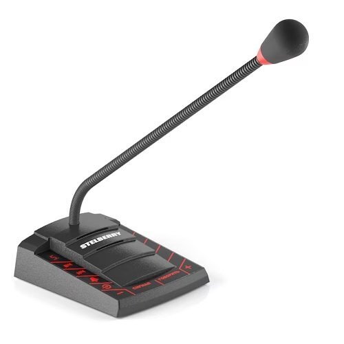 К коммутатору можно подключить до 4-х пультов. Микрофонная стойка пульта оснащена подсветкой и направленным HD-микрофоном с широким динамическим диапазоном.