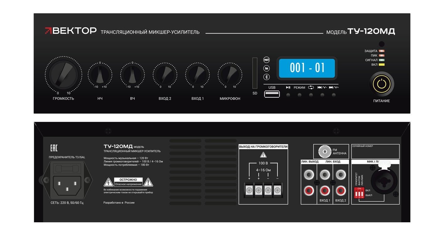Номинальная выходная мощность, Вт 120 | Количество микрофонных входов 1 |