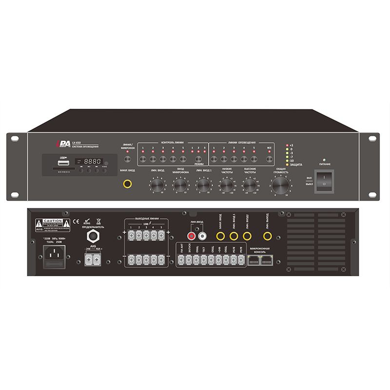 Обладает функциями трансляционного усилителя на 5 зон, микшера-предусилителя, блока контроля линий на 5 зон, блока цифровых сообщений, автоматического зарядного устройства, MP3-проигрывателя и FM-тюнера.