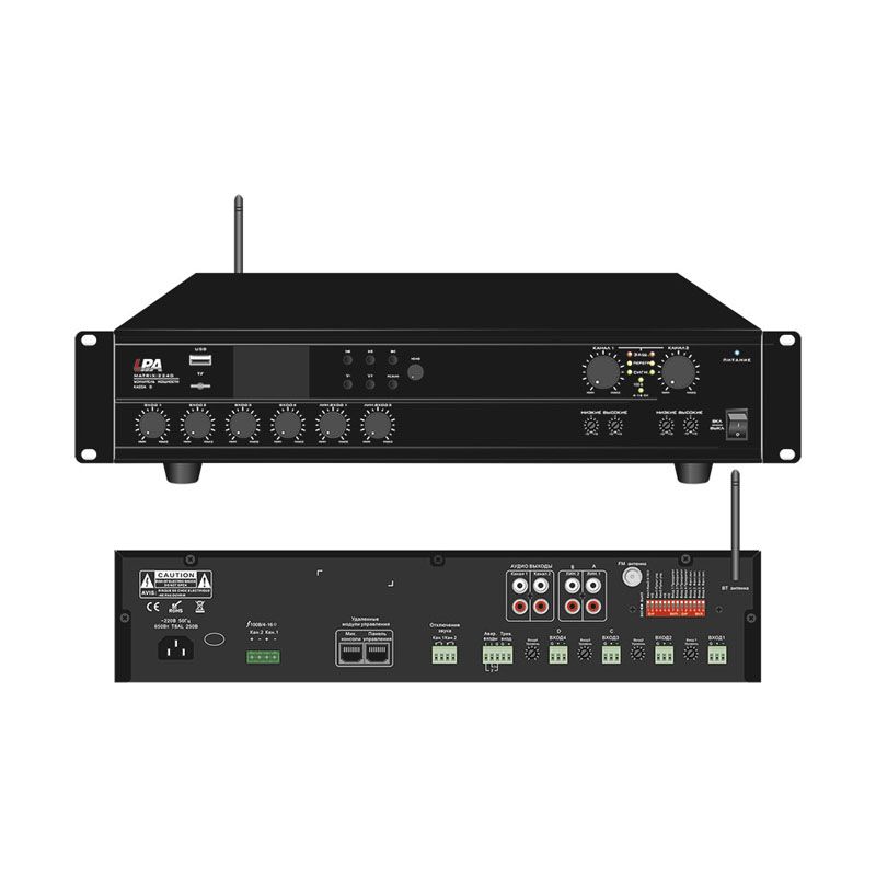 2 выходных канала по 240 Вт с постоянным сопротивлением (4-16 Ом) или постоянным напряжением (100В).