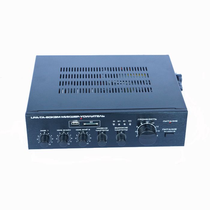 Усиление аудио сигналов от нескольких источников Регулирование уровня входных/выходных сигналов Регуляторы низких и высоких частот Индикация питания, сигнала Защита от перегрузок, короткого замыкания и перегрева Встроенный усилитель на 60 Вт MP3-проигрыватель (USB/SD) Линейный и микрофонный входы Раздельное управление чувствительностью каждого входа
