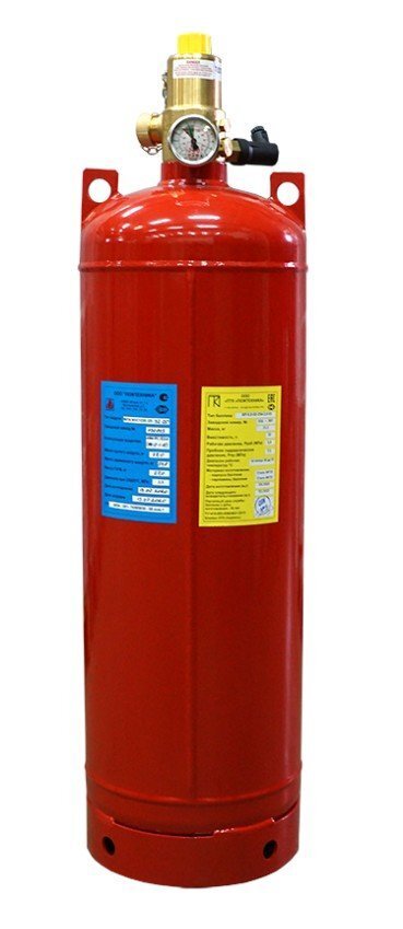 Модуль газового пожаротушения; Р-раб. 30 кгс/см?; вместимость 32 л; ЗПУ Ду 25 мм, реле давления; сварной баллон; габ.размеры D254х925 мм, масса без ГОТВ 26 кг_x000D_ Без ГОТВ (газа), без манометра; тип привода ЗПУ электромагнитное (ЕА45М) или ручное (NVC) указывается при заказе; пневмопуск (при групповом пуске) указывается при заказе