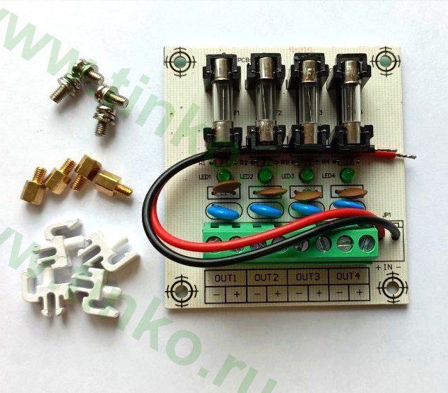 Устройство позволяет получить 4 выходных канала, каждый из которых защищен отдельным предохранителем.