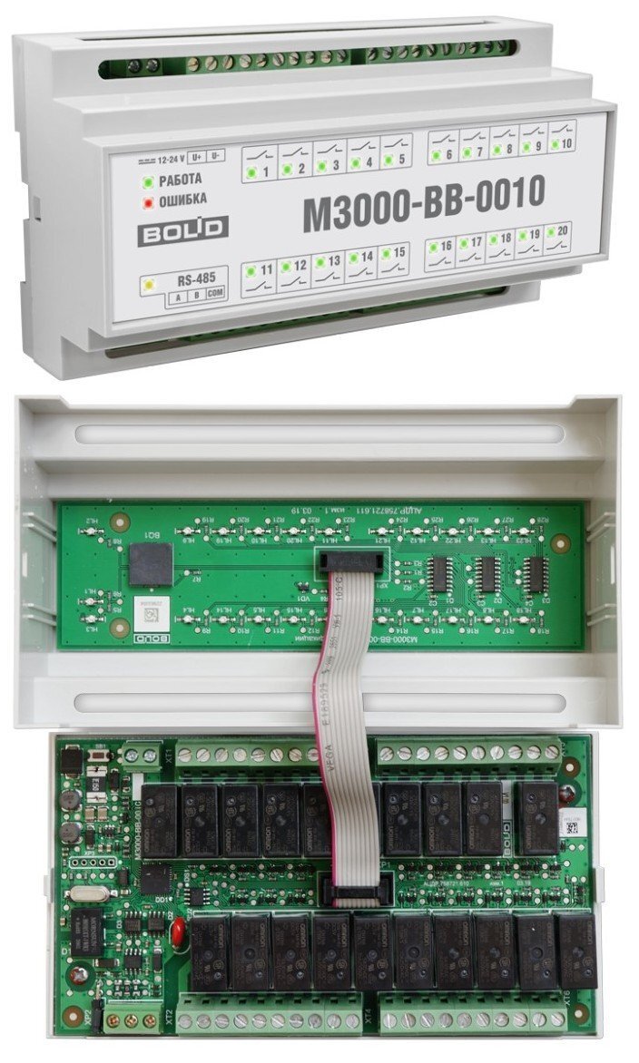 * 20 независимых дискретных выходов - замыкающих реле, рассчитанных на коммутацию напряжений до 250 В и токов до 5 А