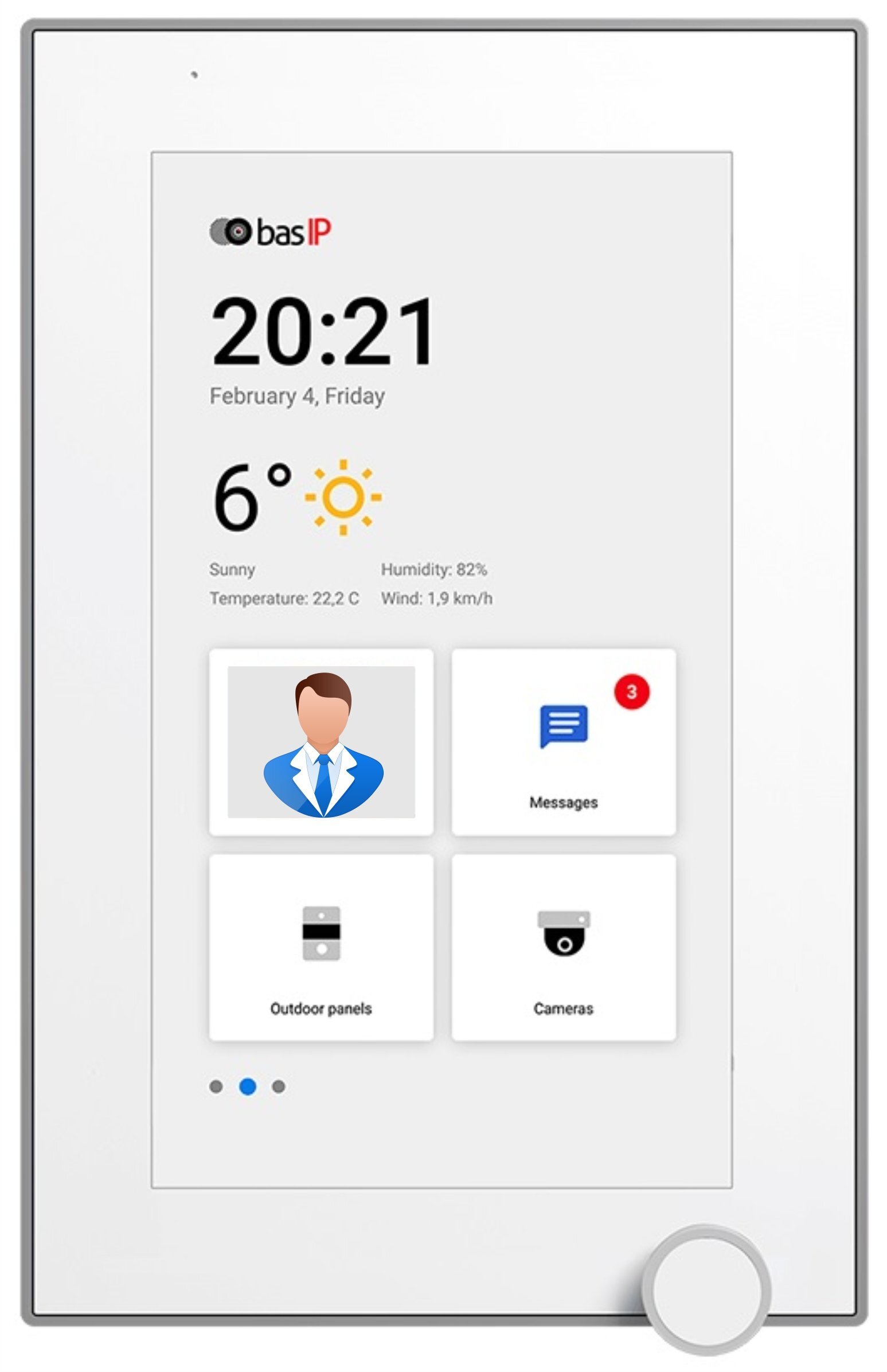 7-дюймовый IP-видеомонитор для помещений с возможностью горизонтального и вертикального монтажа, 1024х600, возможностью управления лифтом, отображением сообщений от управляющей компании, 12В/PoE, 6Вт, подключением 32 камер, до 9 панелей, памятью для фото/видео (64 фото), SD карта до 128Гб и автоответчиком. ОПЕРАЦИОННАЯ система – Android. Цвет - белый; 195x127x27 мм.