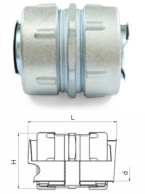 Предназначена для соединения двух отрезков металлорукава, металлорукава в пвх оболочке (Р3ЦП, МРПИ, МРП).