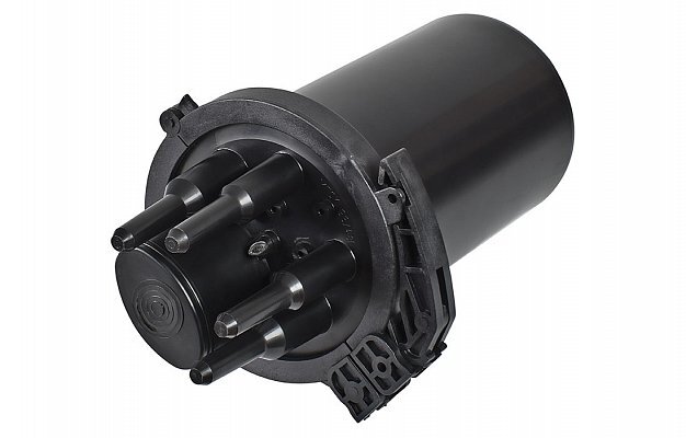 Муфта оптическая, 48 волокон, тупиковая, входы: круглый ступенчатый до 16 мм 2шт, круглый ступенчатый до 25 мм 2шт, овальный до 25 мм/транзит 2/1; с механической герметизацией корпуса и вводов ТУТ, до 3 сплайс кассет(1 в комплекте), -60...+70°C, 324х188 мм.