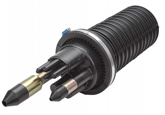 Муфта оптическая, 216 волокон, тупиковая, 4 круглых до 16 мм ввода/вывода, овальный ввод для транзитной петли( до 10 мм/до 25 мм/транзит 4/2/1), с герметизацией вводов №4 и №5, наружное исполнение, до 6 сплайс кассет (1 в комплекте), IP68, -60...+70°C, 494x215 мм.