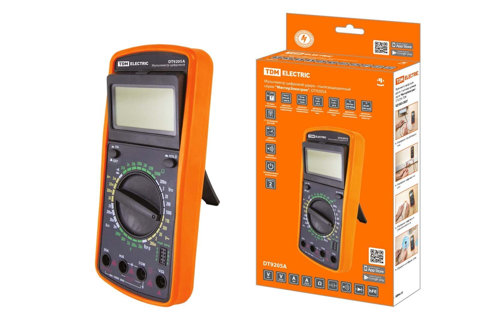 Мультиметр цифровой TDM ЕLECTRIC DT9205A ударо-пыле-защищенный "МастерЭлектрик" TDM (SQ1005-0007)